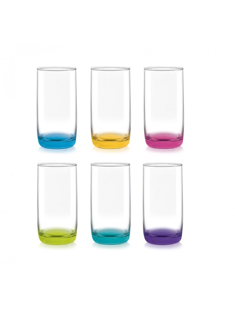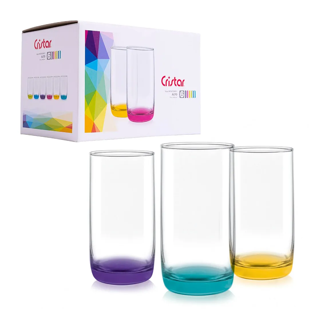 Set de 6 Vaso Altos 445cc MonterreySet de 6 vasos altos modelo Monterrey Marca Cristal de 445 cc de capacidad con los fondos de colores, ideal para tus preparaciones más veraniegas, tus reuniones familiares, de amigos o simplemente para que disfrutes en tu hogar de tus brebajes más clásicos. – 6 vasos altos modelo Monterrey. – 15 cms de alto. – 6,5 cms de diámetro de la boca. – No apto para lavavajillas – Lavar a mano con agua fría