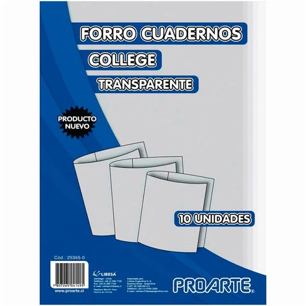 Forro PROARTE College Trasparente Bolsa 10 unidad -Producto Nacional
