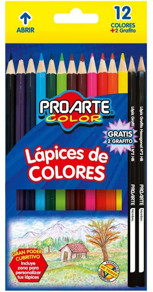 Lápices De Color PROARTE 12 Largos + 2 Grafito + Sacapuntas -Producto Nacional