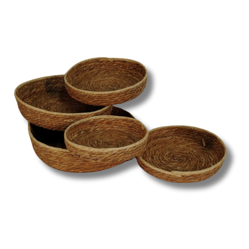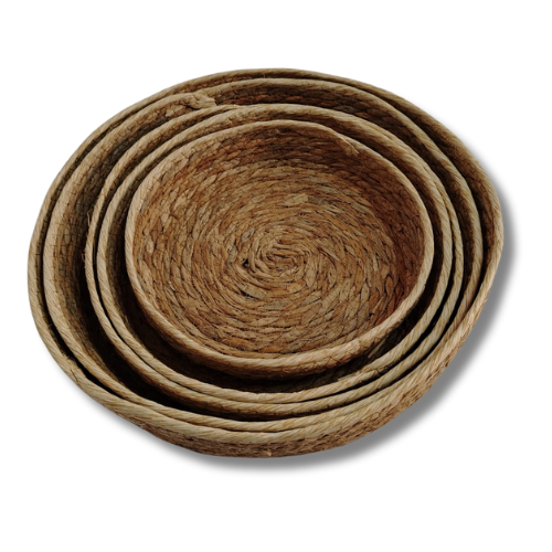 Bandeja artesanales de yute 5 unidades, diferentes dimensiones de 36 cm, 34 cm, 30 cm, 28 cm y 24 cm. de diámetro